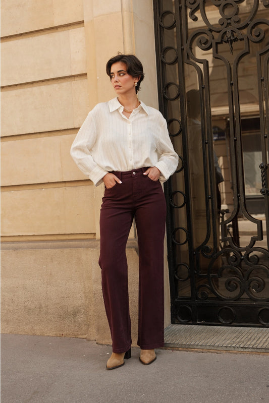 COTTON TREAT HIGH WAISTED JEANS | BURGUNDY
