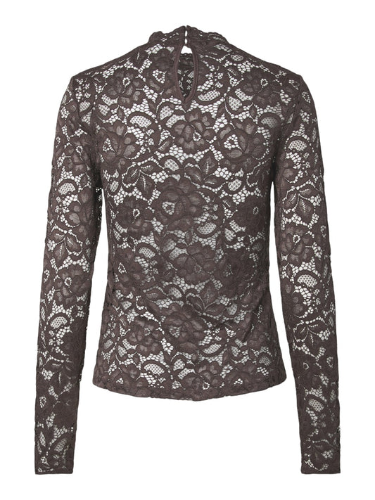 YAS LACEY LS LACE TOP | CHOCOLATE BROWN