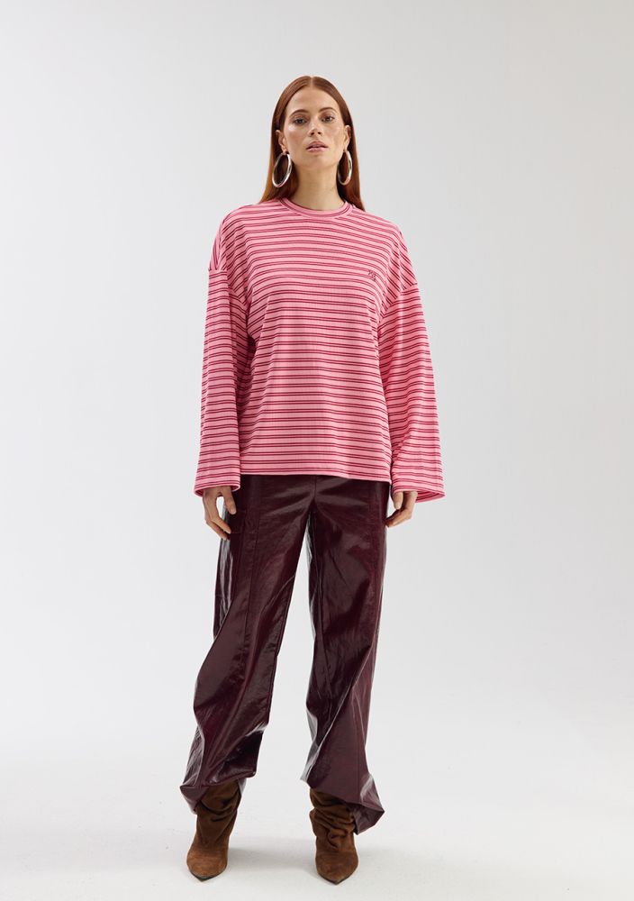 De Tommy LS van HARPER & YVE is een statement longsleeve met een speelse twist. De roze kleur met fijne strepen geeft deze top een frisse, trendy look. Dankzij de losvallende fit en de soepele stof met stretch draagt hij heerlijk comfortabel én valt hij mooi om het lichaam.