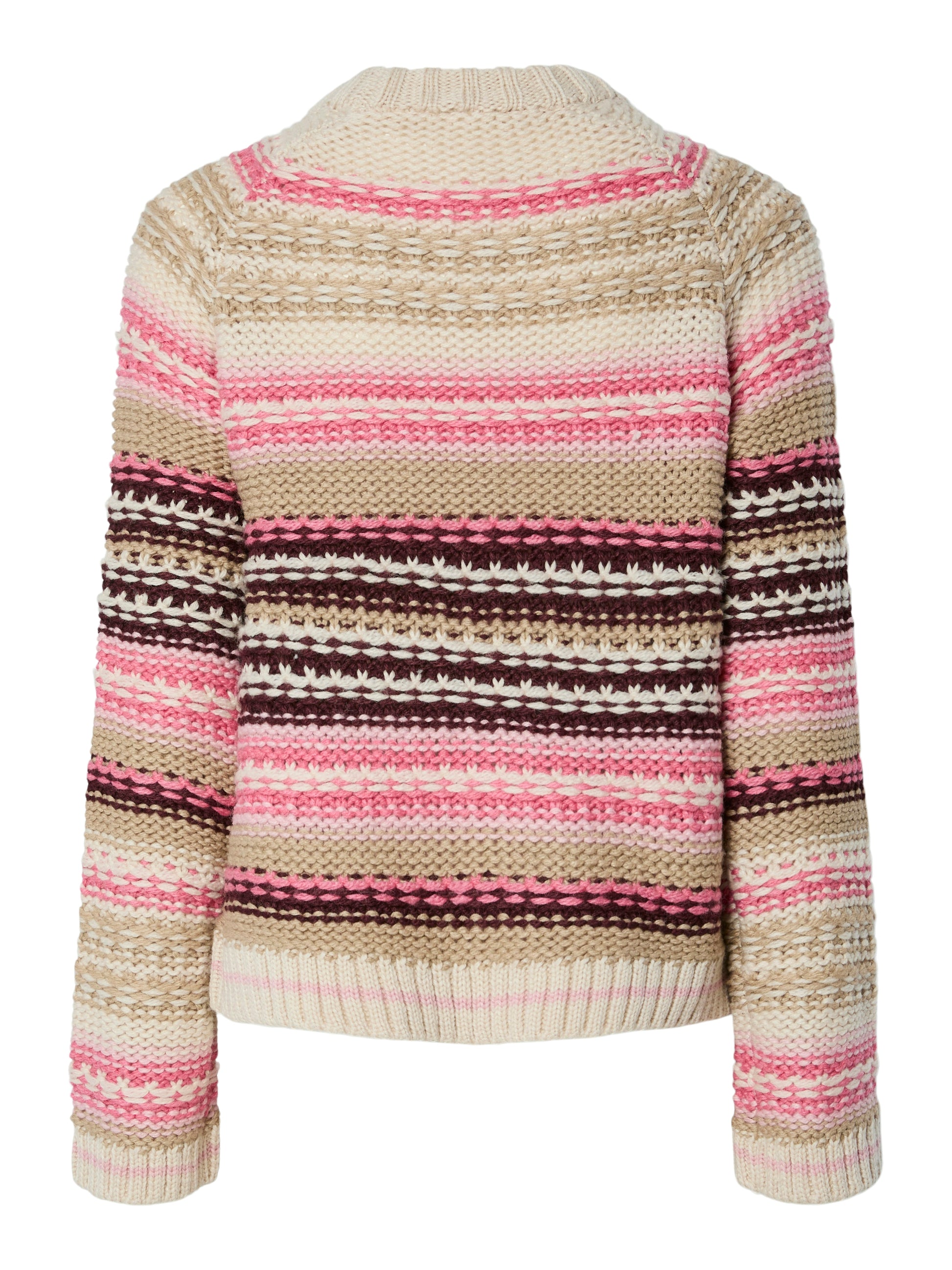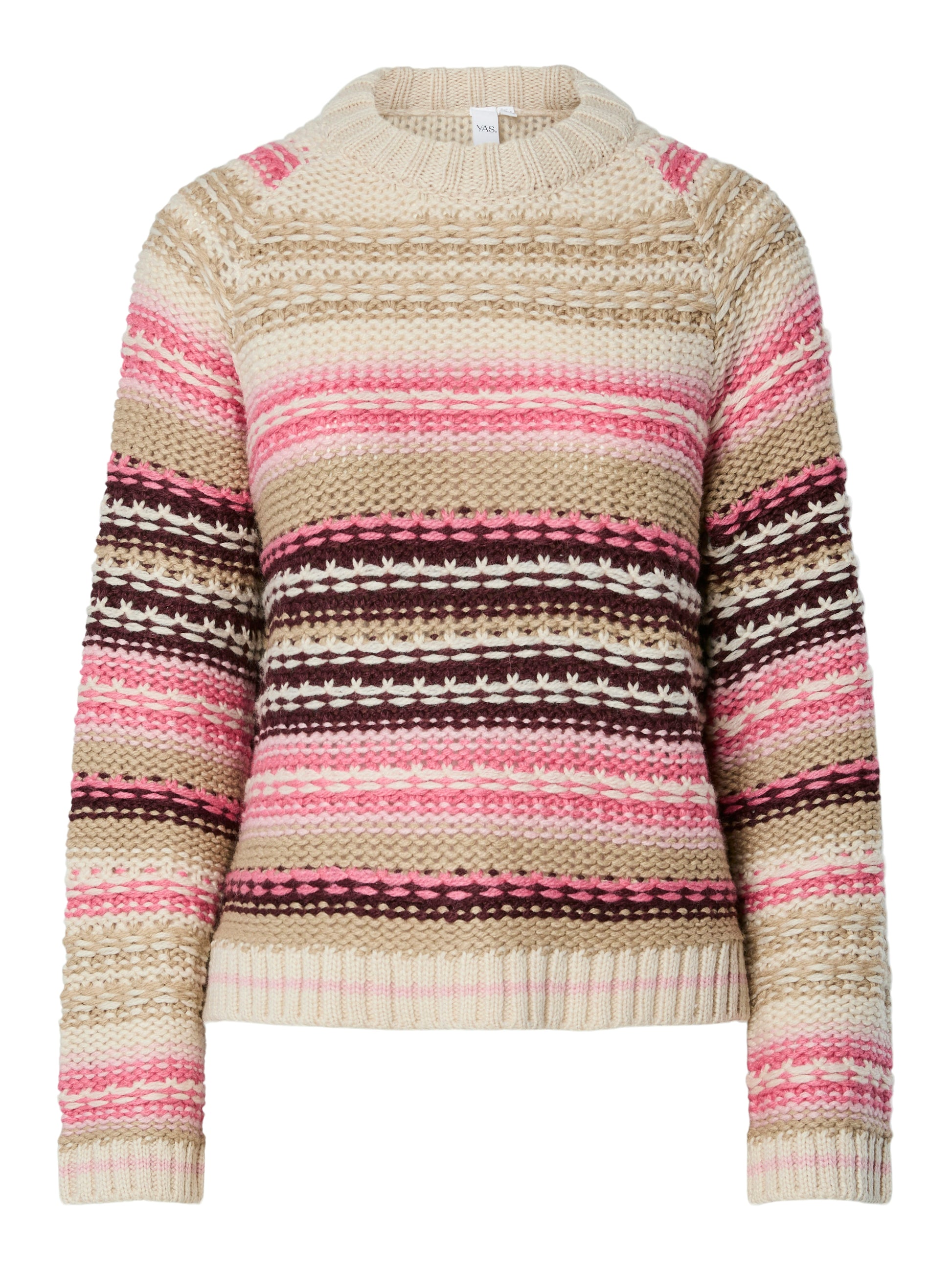 Geef je outfit een kleurrijke touch met deze gestreepte trui van Y.A.S. De trui heeft een normale pasvorm en voelt zacht en comfortabel aan. De strepen in roze, groen, beige, zand en rood zorgen voor een frisse en speelse look.
