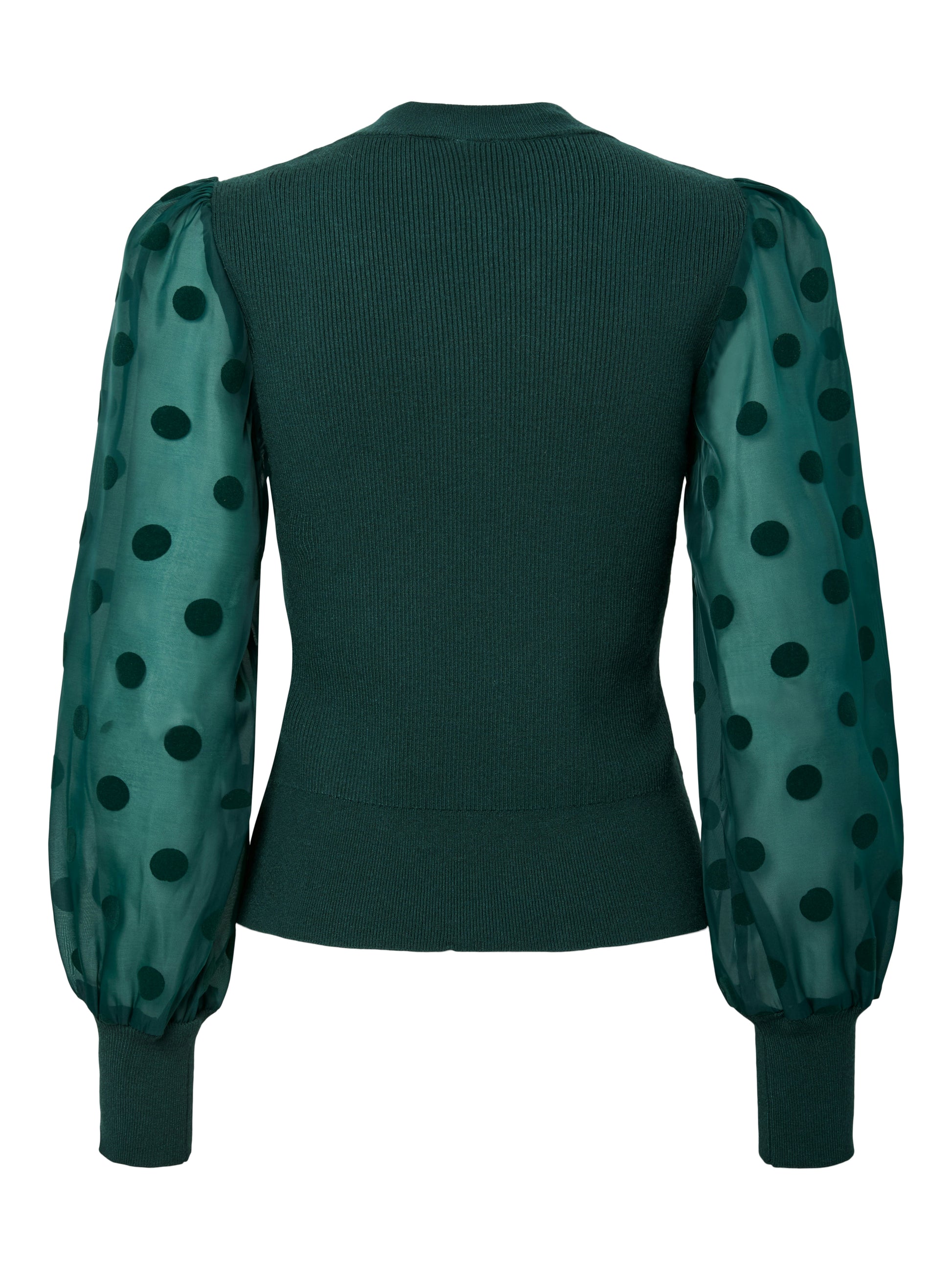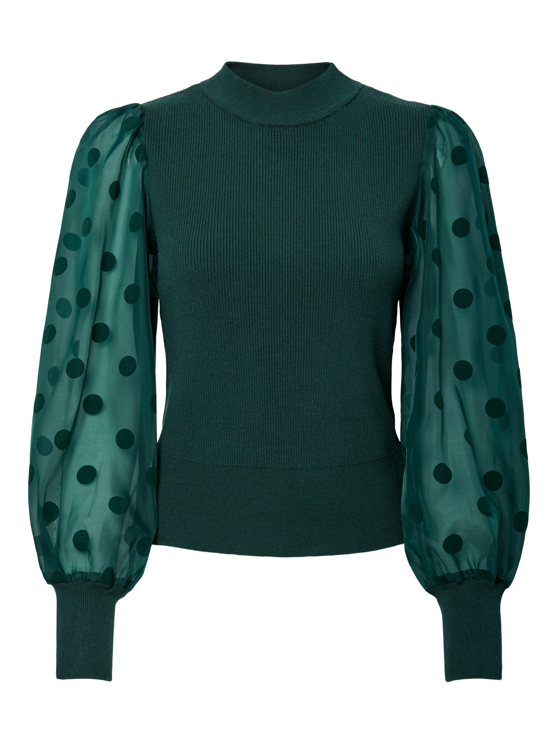 Deze stijlvolle knit top van YAS combineert comfort met een speelse touch. De lange mouwen zijn gemaakt van transparante stof en versierd met subtiele stippen, wat zorgt voor een vrouwelijke en elegante uitstraling. De aansluitende pasvorm accentueert mooi het silhouet, terwijl de zachte knit stof zorgt voor draagcomfort. Perfect te combineren met zowel een rok als een jeans voor een veelzijdige look.