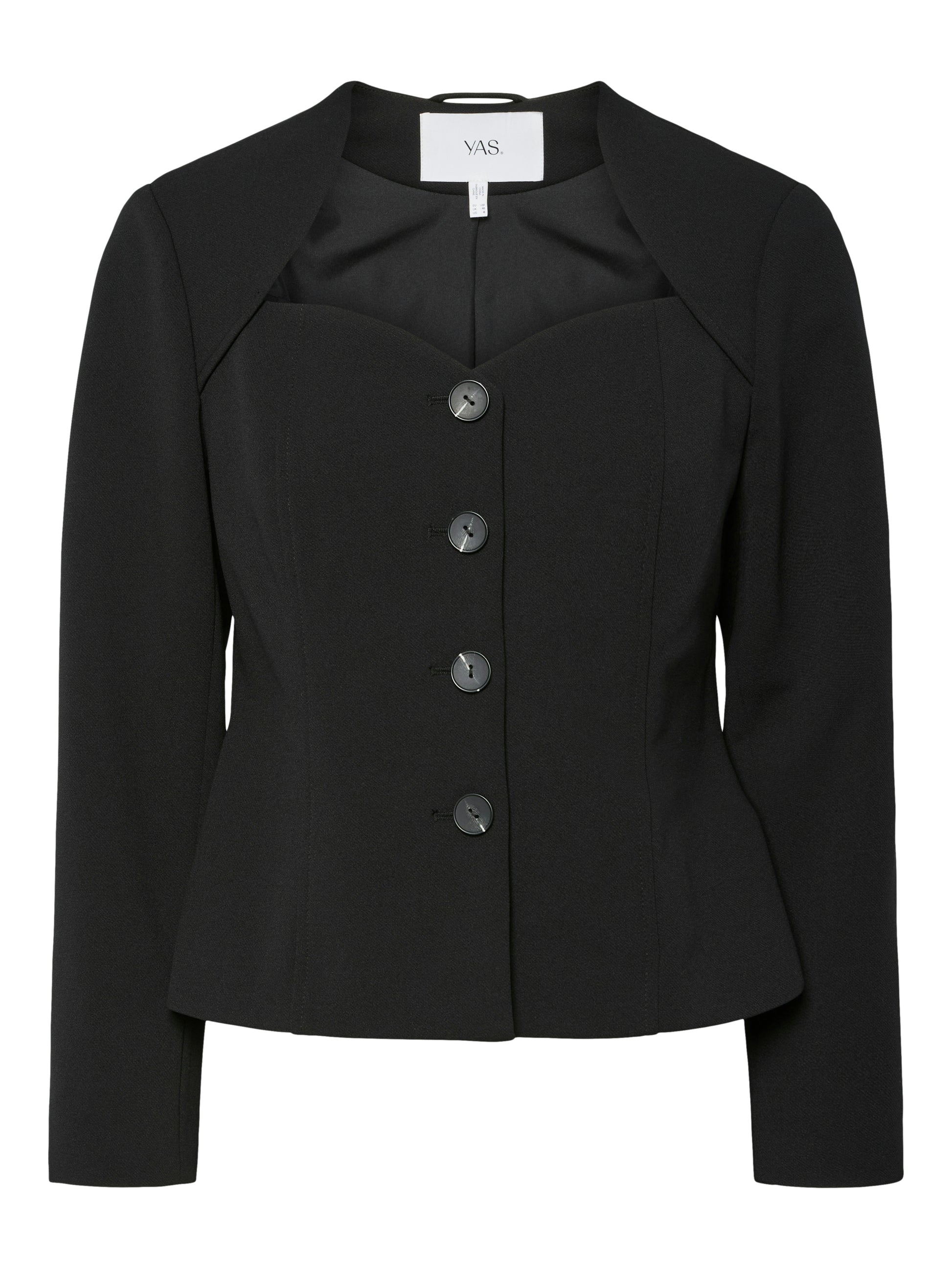 Deze stijlvolle blazer van Y.A.S is een echte musthave voor het nieuwe seizoen. Het korte, aansluitende model zorgt voor een elegante, vrouwelijke pasvorm. De prachtige open hals geeft een verfijnde uitstraling en maakt de blazer perfect om te combineren met een mooie top of blouse eronder. Gemaakt in klassiek zwart, waardoor hij eindeloos te stylen is – zowel casual met een jeans als chic met een rok of pantalon.