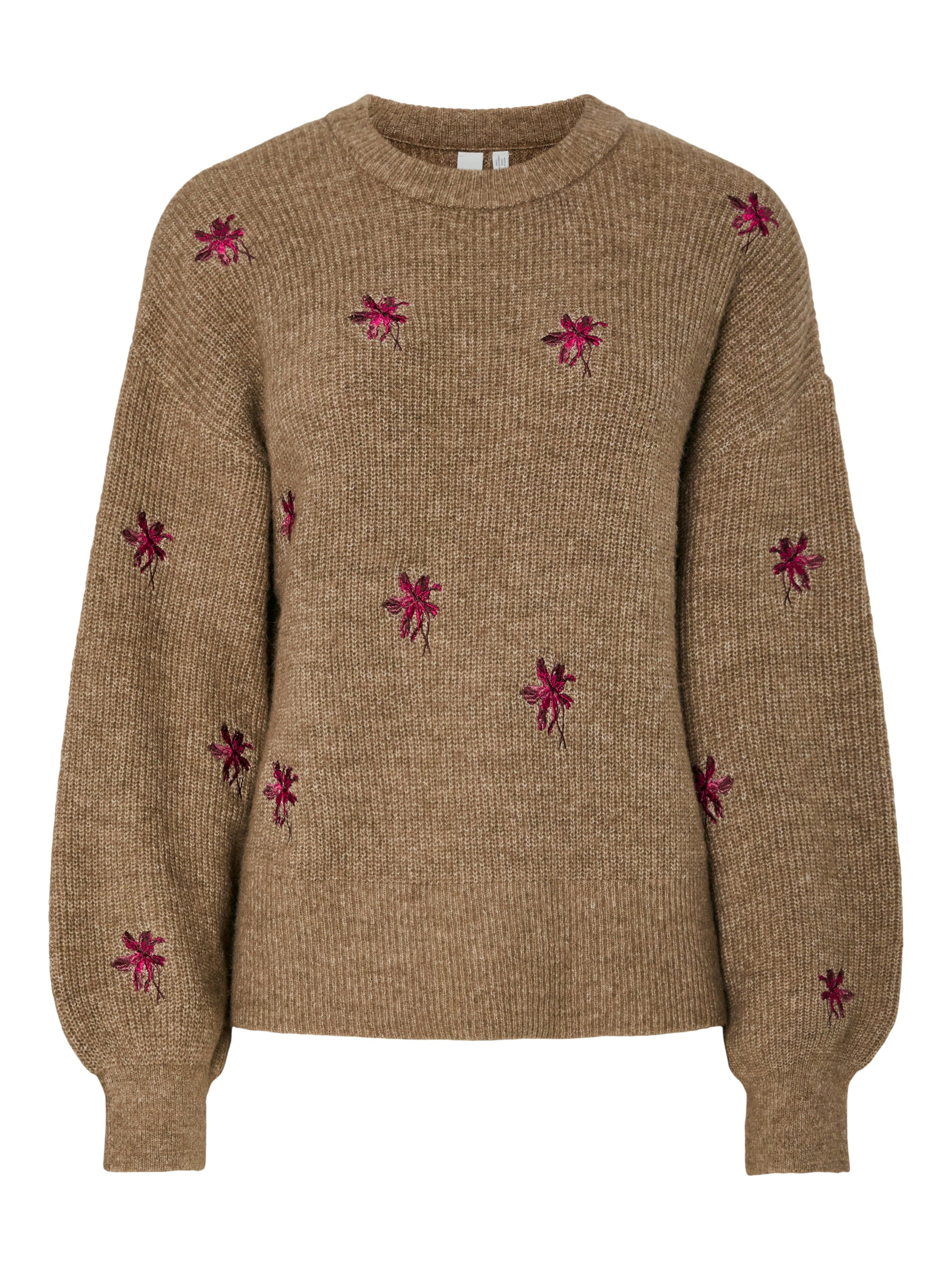 Warme bruine trui van YAS met romantische uitstraling. De gehele trui is versierd met fijne geborduurde bloemen, wat zorgt voor een speelse en stijlvolle look. Met zijn normale fit is hij comfortabel én makkelijk te combineren.