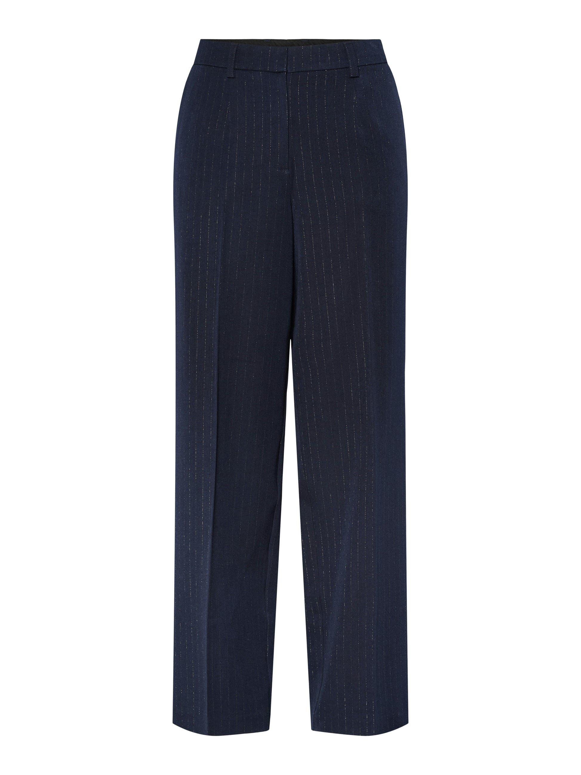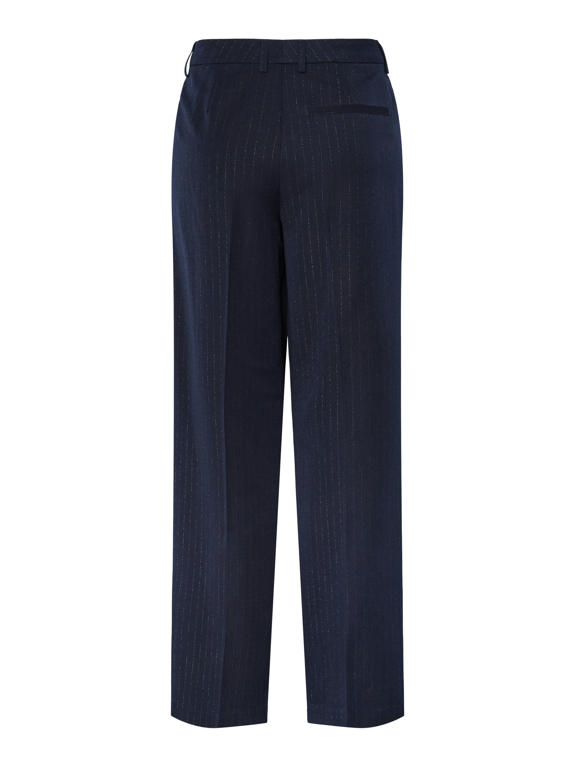 Stijlvolle wide leg broek van YAS in donkerblauw met een verfijnde lichte pinstripe. De soepelvallende pasvorm en wijde pijpen zorgen voor een elegante uitstraling en optimaal draagcomfort. Perfect te combineren met de bijpassende blazer voor een complete en chique set, maar ook mooi te dragen met een eenvoudige top voor een tijdloze look.