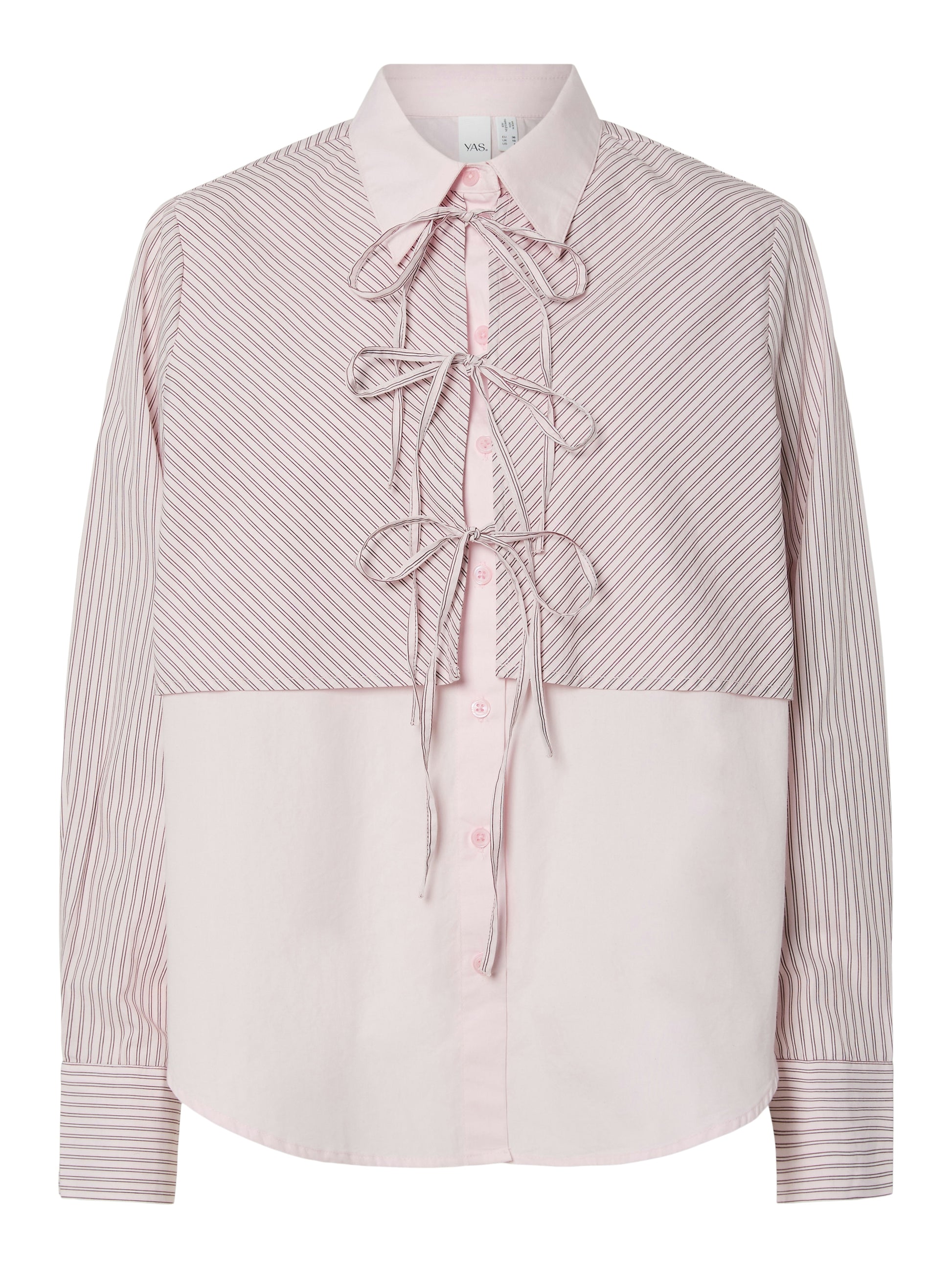 Deze charmante blouse van Y.A.S. is uitgevoerd in een zachte, lichtroze tint. Het bovenstuk is afgewerkt met een elegante flap met subtiele strepen en aan de voorkant zorgen de strikkoorden voor een speels en vrouwelijk detail. De onderkant van de blouse is plain gehouden in effen roze, wat zorgt voor een mooi contrast. Gemaakt van luchtig katoen, ideaal voor een stijlvolle en comfortabele look – perfect te combineren met zowel jeans als een rok.