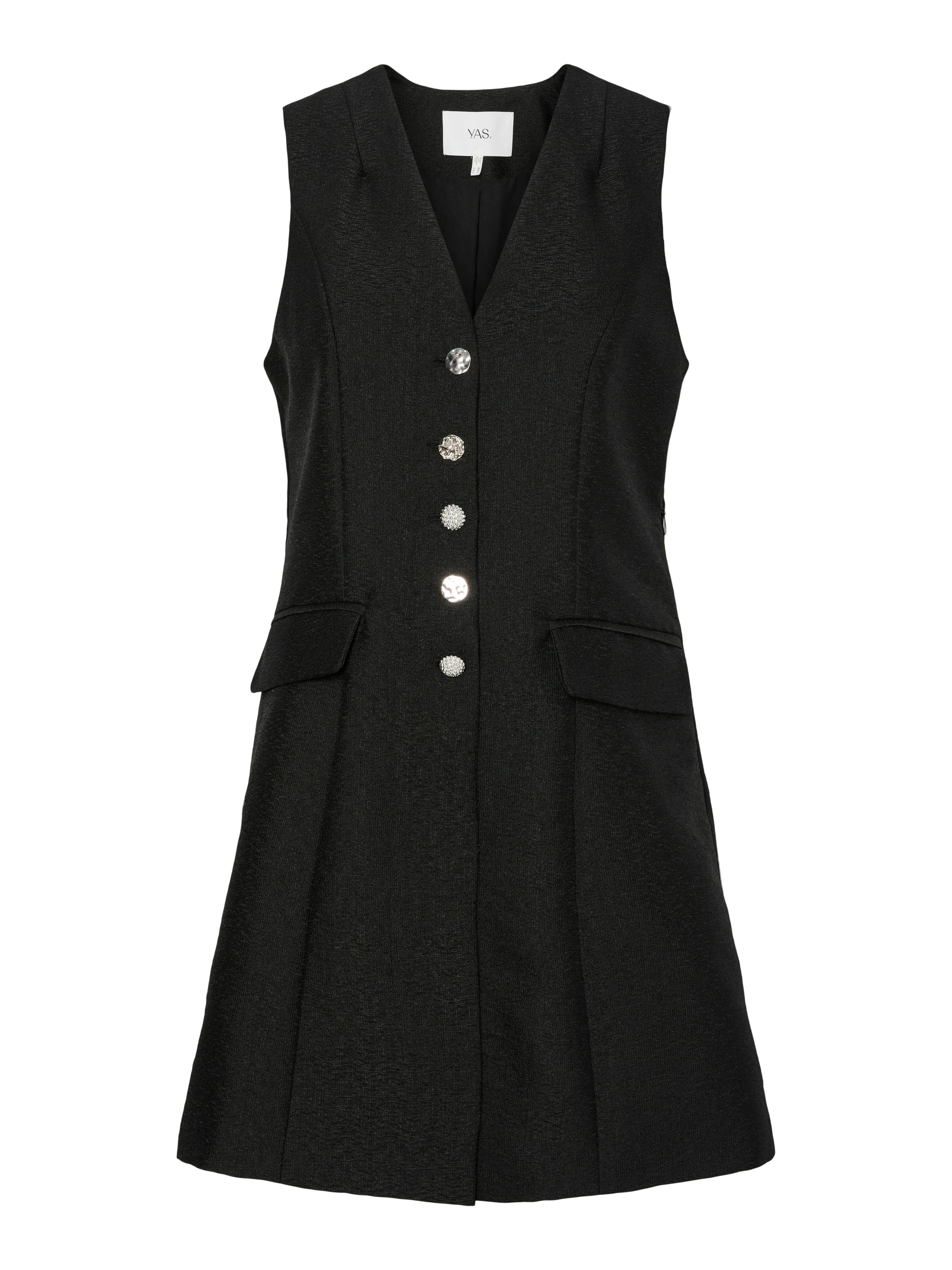 De Spencer Dress van Y.A.S is een echte eyecatcher! Deze getailleerde jurk heeft een vrouwelijke pasvorm die subtiel uitloopt aan de onderkant voor een elegant silhouet. De zilverkleurige knopen geven de jurk een chique, moderne uitstraling, terwijl de V-hals en het mouwloze design zorgen voor een tijdloze look.