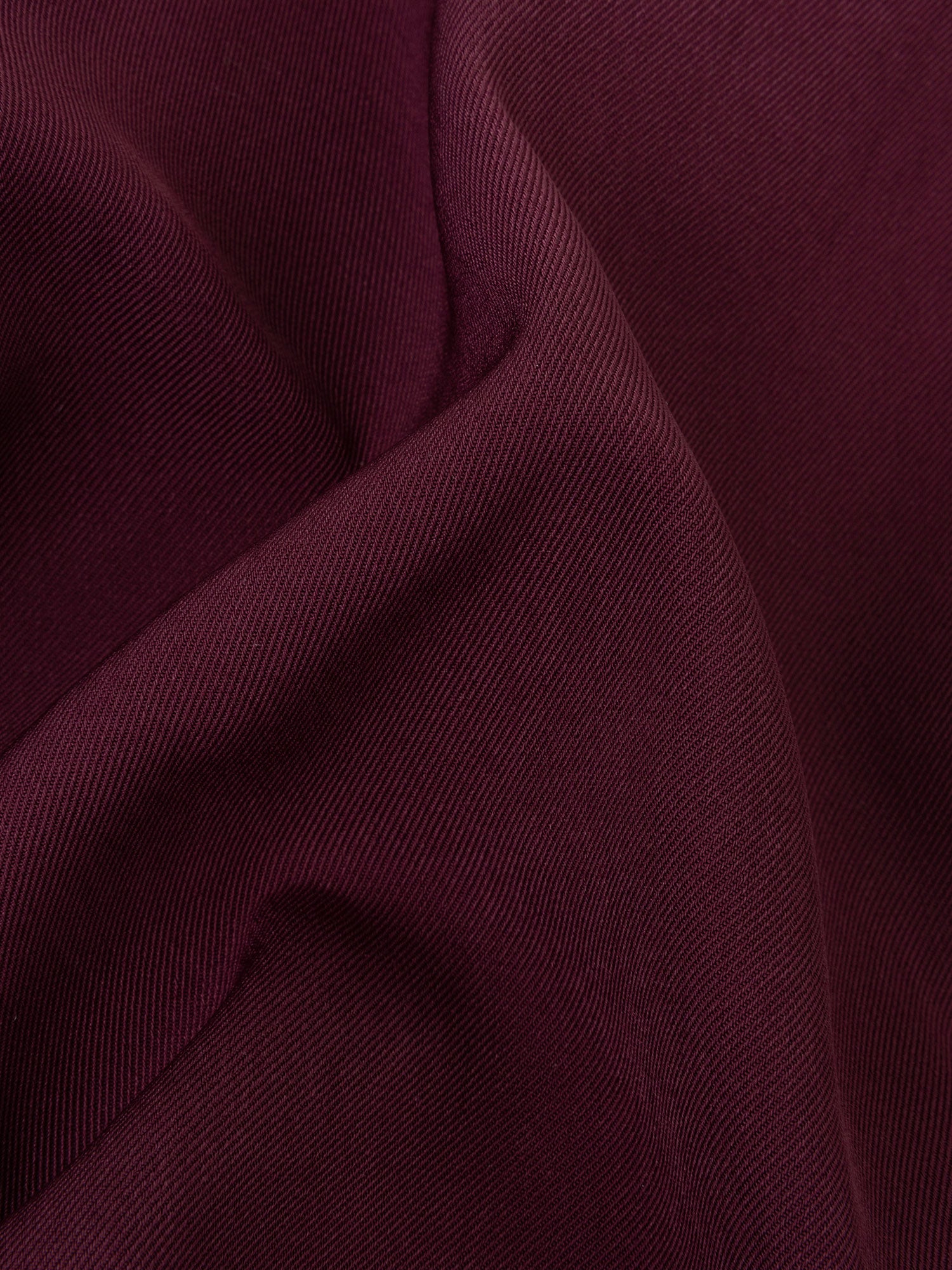 Dit prachtige aubergine kleurige gilet is de perfecte mix van stoer en stijlvol. De klassieke kraag en zilveren ritssluiting geven een tijdloze uitstraling, terwijl de twee schuine zakken met klepje en zilveren drukknoop zorgen voor een speels en praktisch detail.